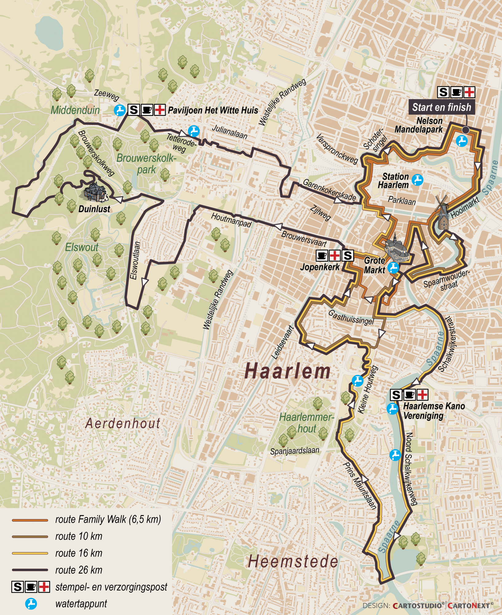 Bij de KiKa Haarlem City Walk ontdek je de Noord-Hollandse hoofdstad. De afstanden van 6,5, 10, 16 en 26 km maken kennis met het levendige stadscentrum en de pittoreske straatjes, maar ook de groene stadsparken, de oevers van het Spaarne en de uitgestrekte buitengebieden.Bekijk de routes